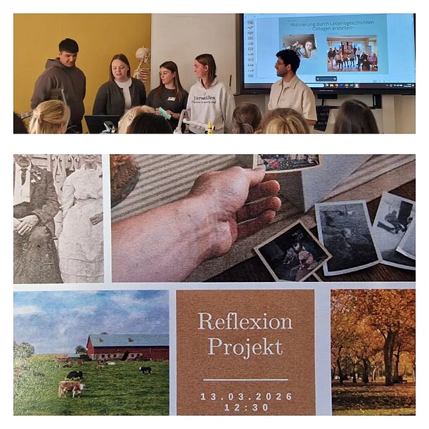 Am Freitag durften unsere Bewohner ihre Collagen mit Unterstützung ihrer SchülerInnen deren Lehrerin und Rektorin vorstellen. Im Anschluss ging es für die Projektbegleiter der Betreuung in die Schlule, wo die Auszubildenden ihr Projekt ihren MitschülerInnen und LehrerInnen präsentierten.