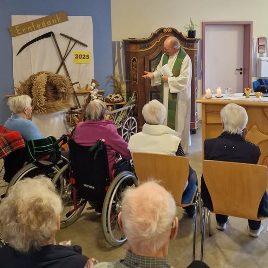 Bei unserem Erntedank-Gottesdienst waren gestern sehr viele Bewohner anwesend und konnten so unter anderem daran teilhaben, wie unser Erntedank-Altar von Pfarrer Bauer gesegnet wurde.
